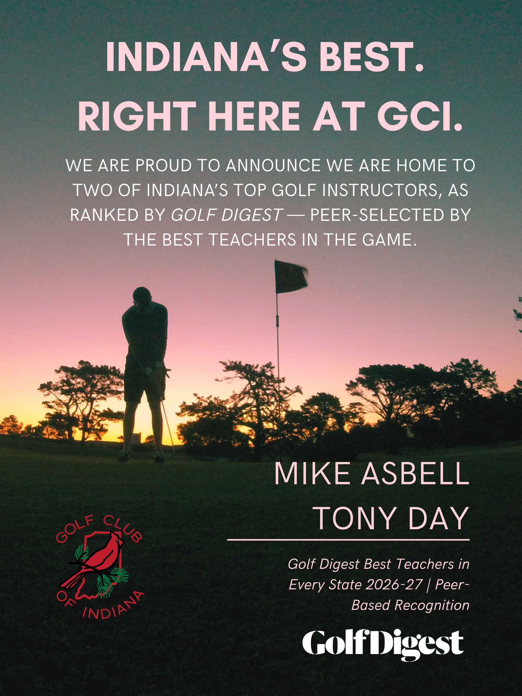 Mike resides in Westfield with his wife Tasha, and their two daughters, Myla and Tenley. We are thrilled to have Mike and his family as part of our team at Golf Club of Indiana and the Golf Pro-Formance Academy. Stay tuned for all of our updated Junior Programs and new schedules as we look forward to continued growth in junior golf in Central Indiana.